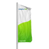 Drapeaux pour mât avec soufflerie brillamment imprimés, idéals pour les salons et événements en intérieur. Le souffle constant maintient les pavillons bien déployés et visibles – même sans vent.