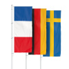 Les drapeaux nationaux au format vertical avec potence flottent toujours de manière optimale et sont ainsi visibles de loin. Des matériaux robustes, des couleurs intenses et une confection de haute qualité assurent une longue durabilité des drapeaux avec potence.