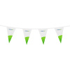 Le matériau est résistant aux intempéries et difficilement inflammable (classification feu B-s1, d0 selon EN 13501-1:2018). Le tissu est lavable, sèche rapidement et peut ainsi être réutilisé en un rien de temps. Des fils de couture résistants à la déchirure et une finition de haute qualité garantissent une excellente durabilité de la guirlande de fanions.