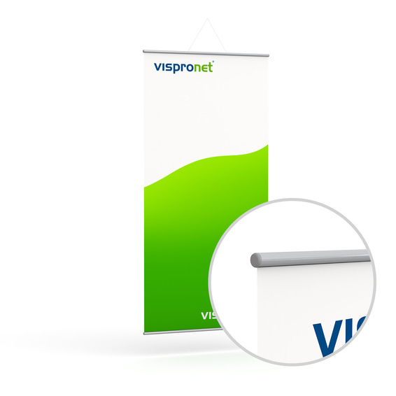 • Impression tissu / kakémono suspendu, finition à baguettes métalliques ø 13 mm – Description