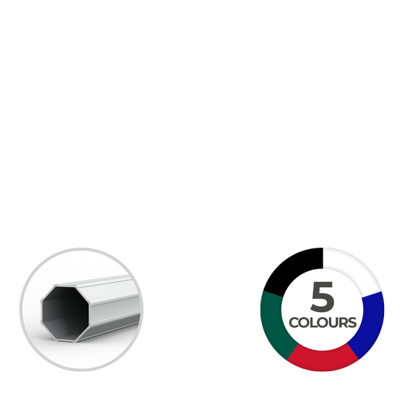 • Poteaux en profils octogonaux très stables (haut : ø 52 mm, bas : ø 45 mm, épaisseur des cloisons : 1,5 mm)