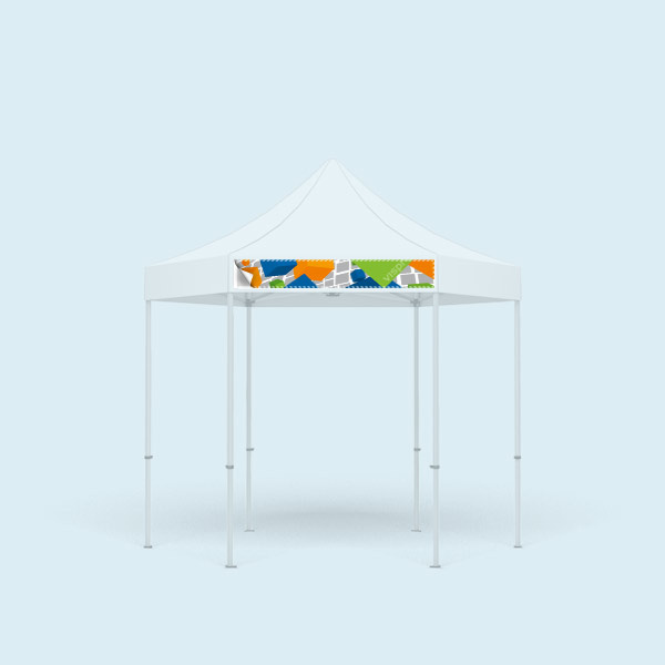Les banderoles changeables sont conçues pour les pavillons et tentes pliables de Vispronet®. Nous déclinons toute responsabilité quant à leur utilisation sur d’autres systèmes.