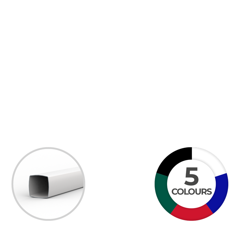 • Poteaux : solides profilés carrés en acier thermo laqué blanc (30 x 30 mm, ép. de la cloison 0,8 mm)