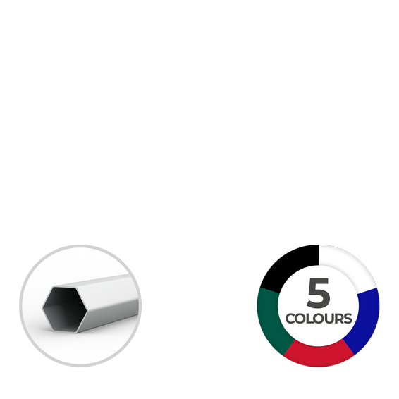 • Poteaux hexagonaux de haute qualité en aluminium (en haut: ø 40 mm, en bas: ø 36 mm, épaisseur de la cloison : 1,2 mm)
